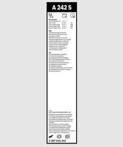 Bosch Aerotwin EURO SET A242S được thiết kế để cung cấp hiệu suất gạt mưa vượt trội, giúp kính lái luôn sạch sẽ, rõ ràng dưới mọi điều kiện thời tiết. Với công nghệ tiên tiến, sản phẩm này mang lại hiệu quả gạt mưa tốt nhất, đồng thời giảm thiểu tiếng ồn, mang lại sự thoải mái tối ưu cho người lái và hành khách.
